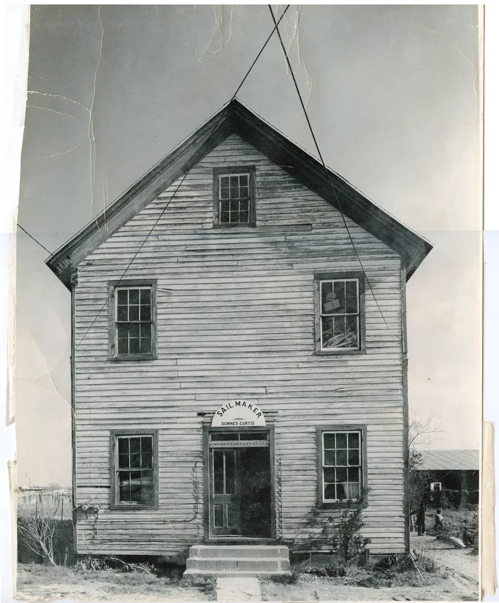 Black-and-white photograph of Downes and Albert Curtis’s historic sailmaker’s loft on Tilghman Street, Oxford, ca. 1930. Courtesy of © Mr. and Mrs. George Albury